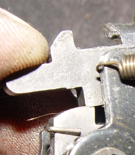 кончик небольшой отломился от конца пружины, где она в шайбу опорную