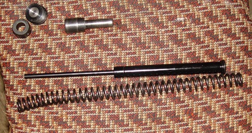 Для этого необходимо на станке отрезать направляющую и сделать центрующие углубление под шток пружины
