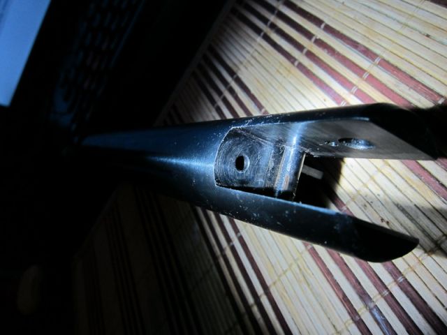 вот благодаря этой маленькой сволочи, что подпирает третье шепатло, спуск неадекватен. сточил болгаркой сверху и снизу примерно на толщину витка. стало как надо, но пока экспериментирую с настройками на ск. на нём ещё обнаружено в передней части какое-то отверстие с резьбой, зачем, непоняно.