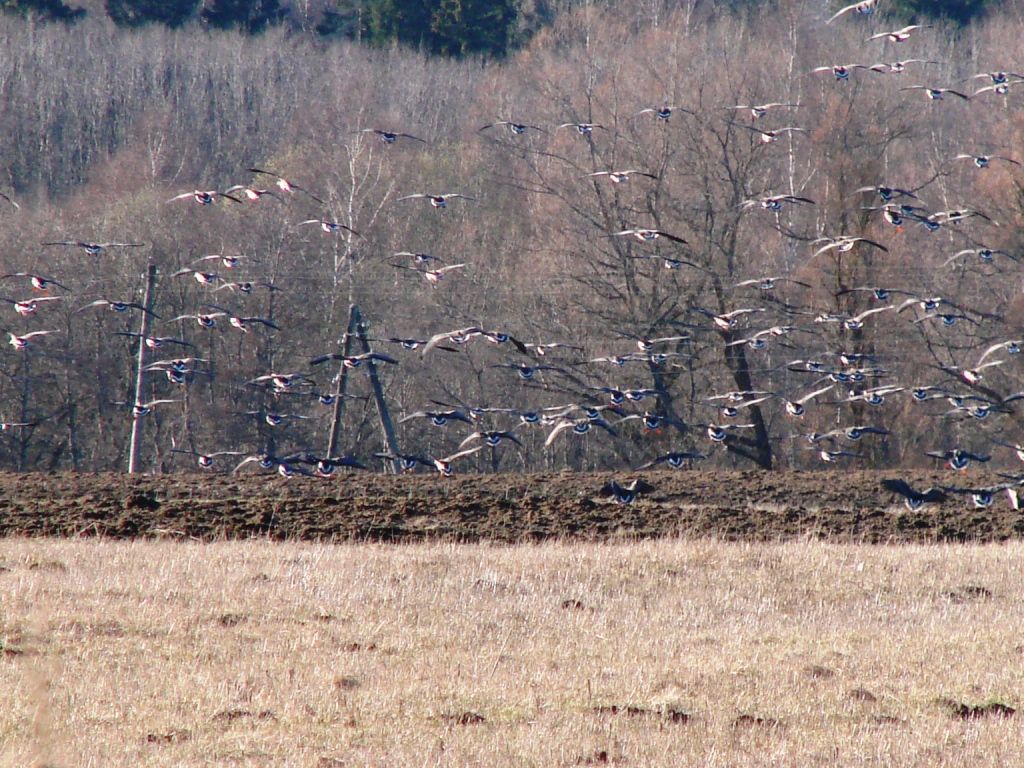 Таперь с комментариями. Гуси садятся на поле.